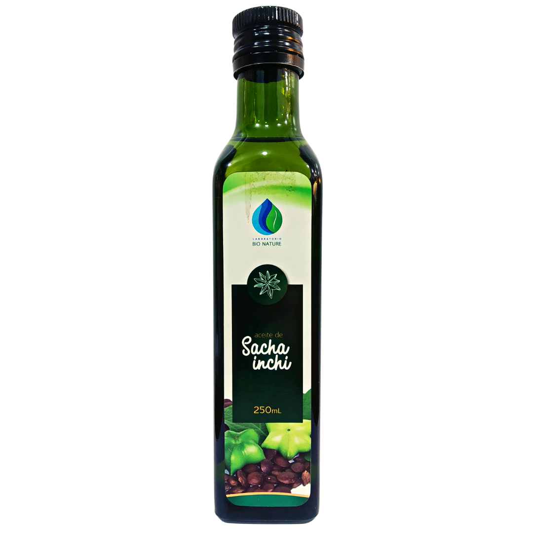 Aceite de Sacha Inchi Amazónico - Bio Nature - Botella 250 ml Las semillas del Sacha Inchi son la fuente natural del mejor aceite del mundo, tiene el mayor contenido de Omega3, es el más rico en ácidos grasos insaturados llega hasta el 93.3%. En promedio tiene 48.6% de Omega 3, 36.8% de Omega 6 y 8.28% de Omega 9. Por su naturaleza y por la tecnología utilizada, aplicados en los cultivos ecológicos y su proceso industrial de extracción, es un aceite de alta calidad para la alimentación y la salud.