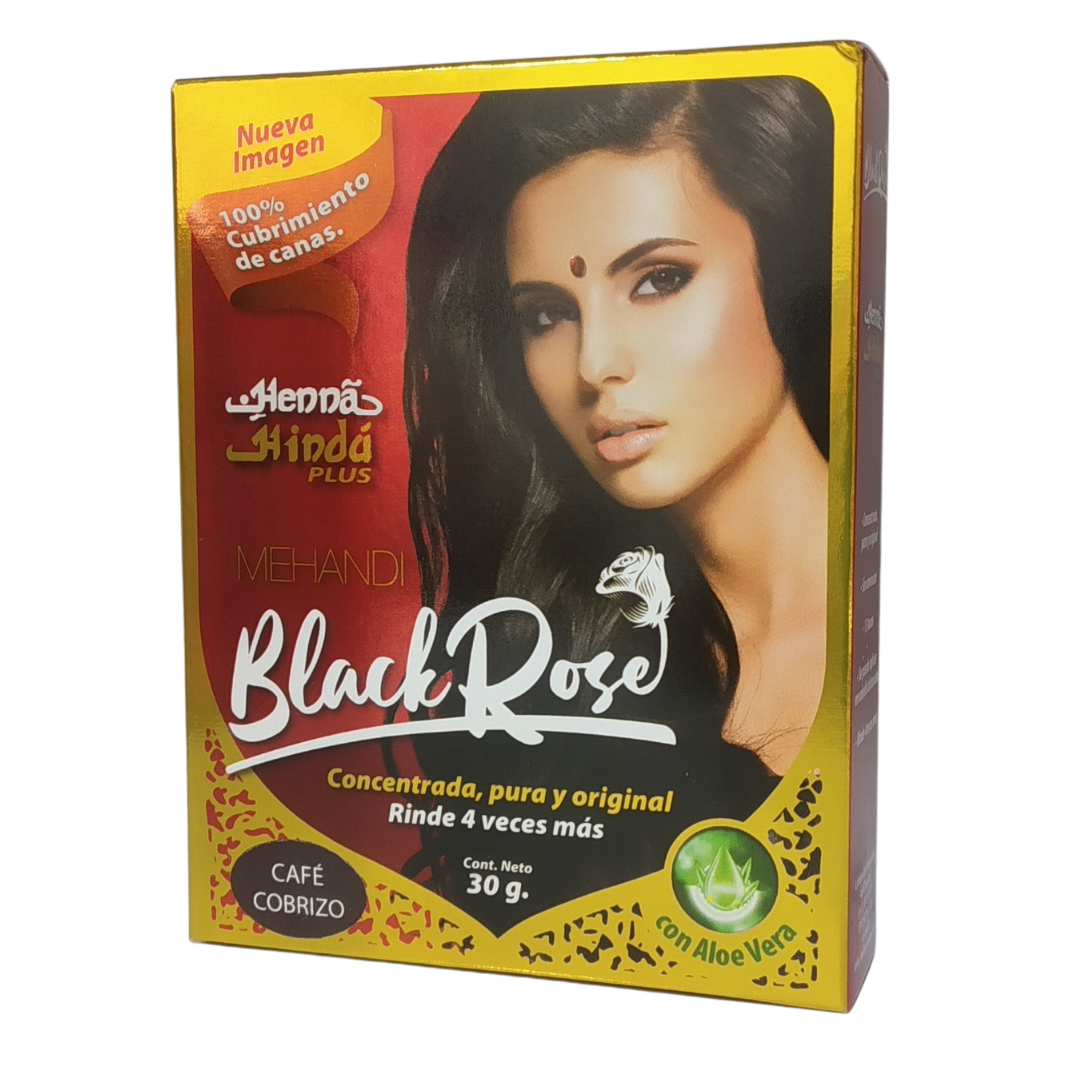 Kit Henna Hindú BlackRose - BlackRose - Caja 30 gr La Henna Hindú Original es un tinte natural que se fabrica a partir de las hojas de árbol de la henna, se secan, se muelen y se les adiciona el pigmento de color y el aloe vera, fabricado 100% en la India, es un producto original, puro y concentrado, por esta razón rinde 4 veces mas. Empacado en un material que no permite el ingreso de los rayos del sol, lo cual brinda al producto estabilidad en sus colores y mayor calidad y frescura.
