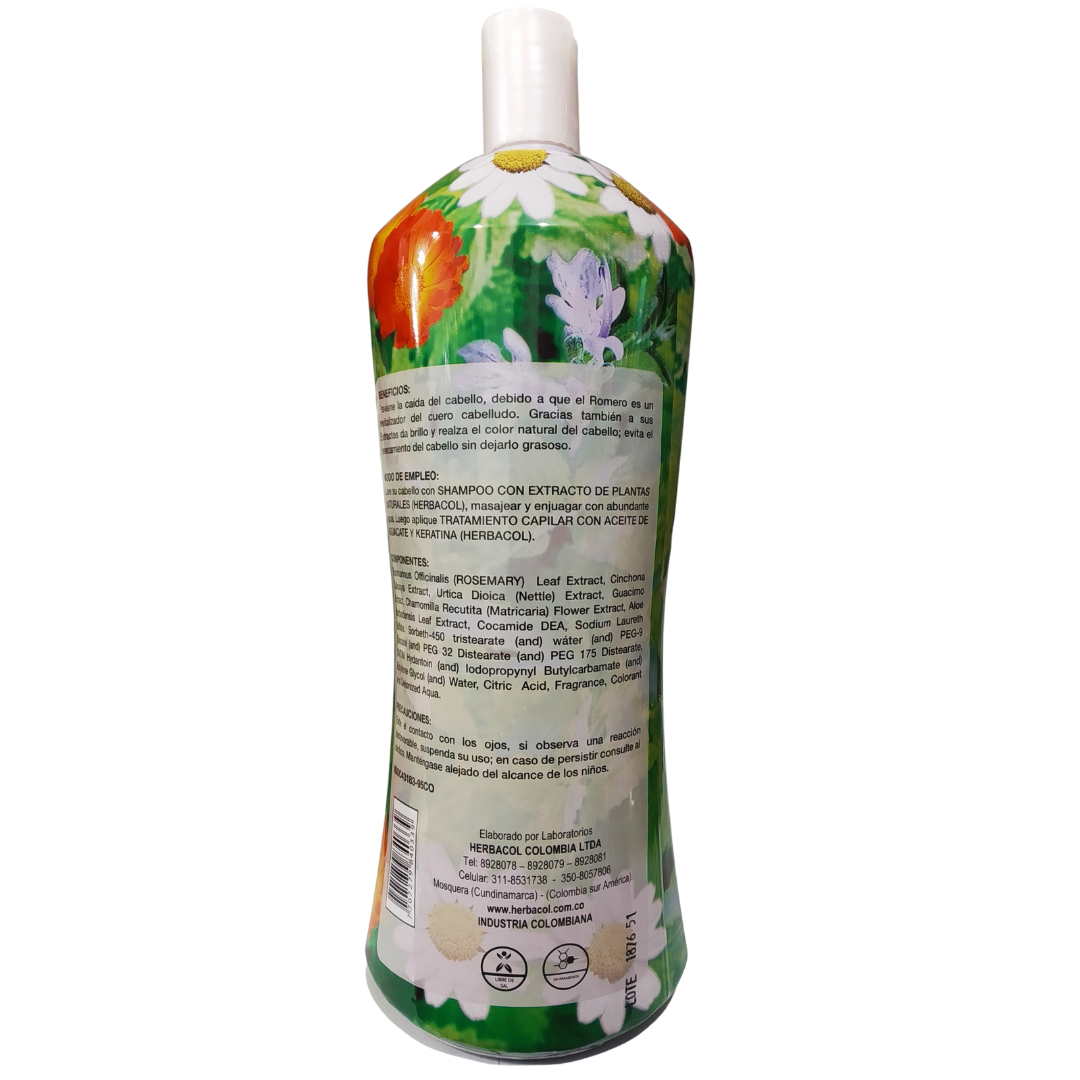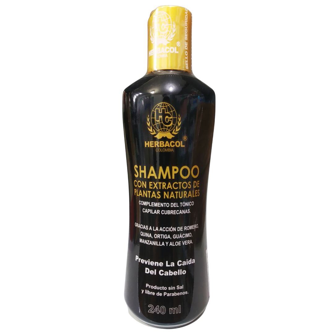 Shampoo Con Extractos de Plantas Naturales - Herbacol - Frasco 240 ml El Shampoo Con Extractos de Plantas Naturales previene la caída del cabello, debido a que el Romero es un revitalizador del cuero cabelludo. Gracias también a sus extractos da brillo y realza el color natural del cabello; evita el resecamiento del cabello sin dejarlo grasoso. Sin sal y libre de parabenos.