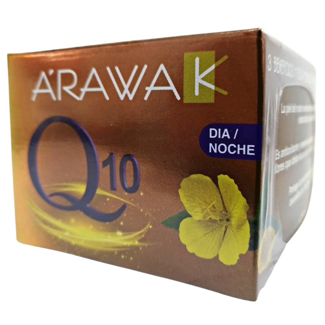 Crema Antiedad Con DNA Gel y Coenzima Q10 - Arawak - Frasco 50 gr La Crema Anti edad Coenzima Q10 ha sido diseñada para todo tipo de piel, por su especial composición, hidrata y regenera la piel, acelerando la respiración celular y retrasando el envejecimiento prematuro.