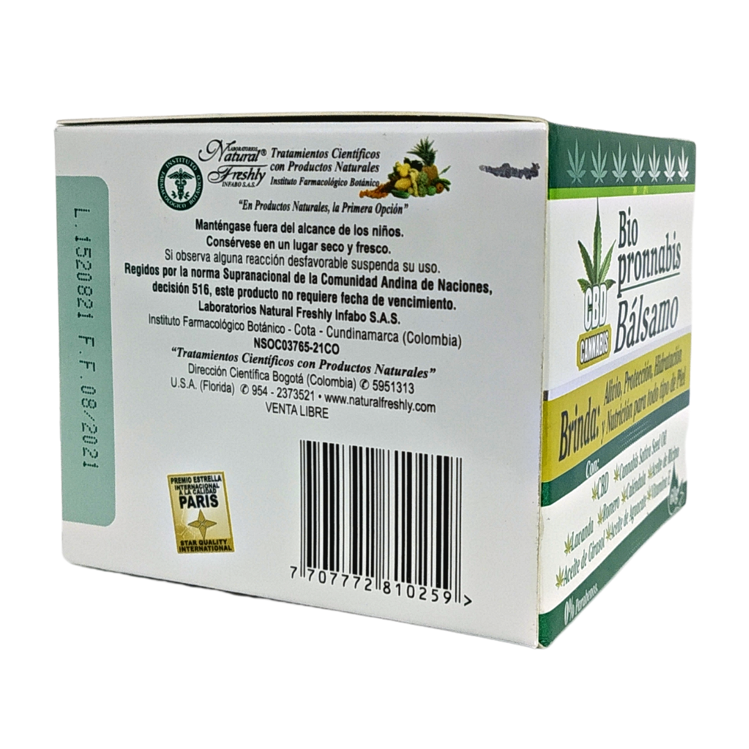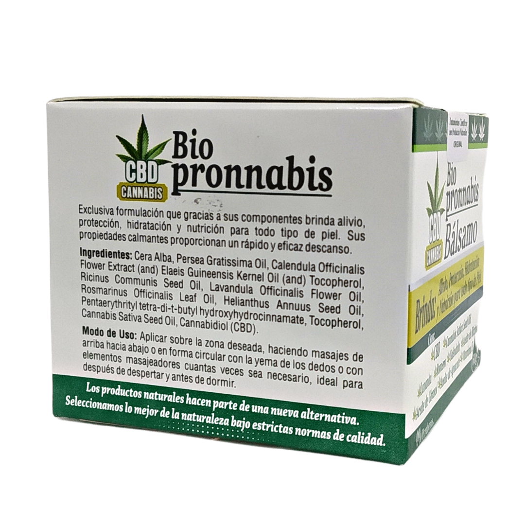 Biopronnabis Balsamo - Natural Freshly - Frasco 60 g El Bálsamo Biopronnabis es una exclusiva formulación que gracias a sus componentes brinda alivio, protección, hidratación y nutrición para todo tipo de piel. Sus propiedades calmantes proporcionan un rápido y eficaz descanso.