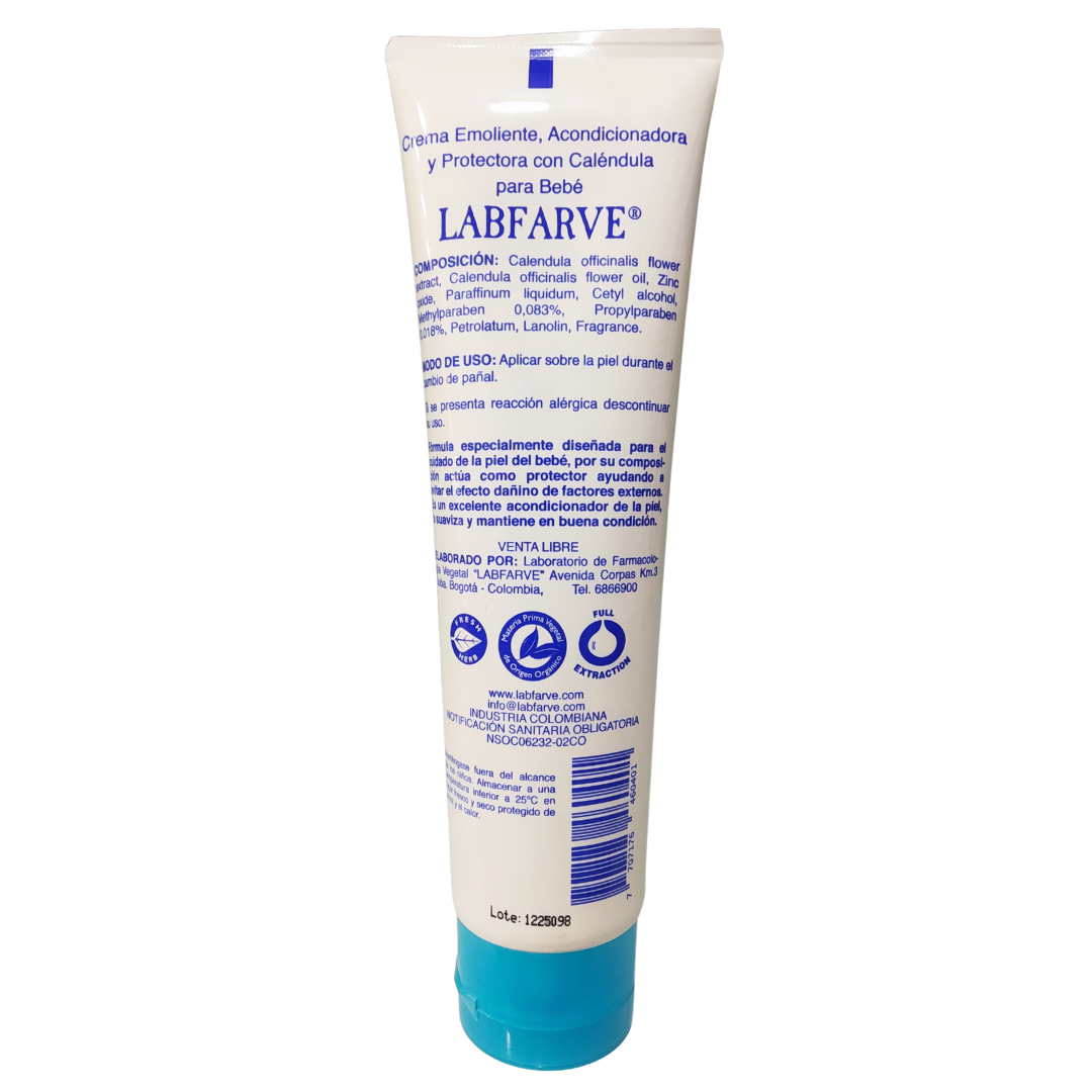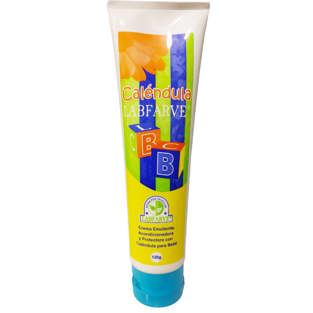 Crema de Caléndula para Bebé - Labfarve - Frasco 120 gr La Crema de Caléndula para bebé Labfarve contiene extractos naturales que hidratan y evitan las irritaciones en la piel del bebé causadas por la orina formando una barrera de protección. En adultos brinda un fresco alivio a la piel irritada por el sol.