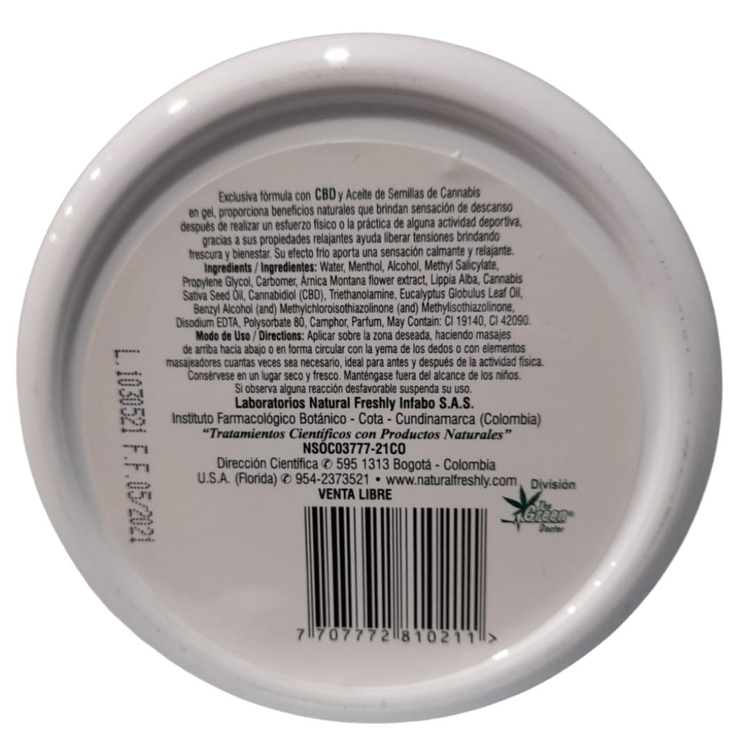 Gel Frío Biopronnabis CBD CANNABIS - Natural  Freshly - Frasco 200 gr Exclusiva fórmula con CBD y aceite de semillas de cannabis en gel, proporciona beneficios naturales que brindan sensación de descanso después de realizar un esfuerzo físico o la practica de alguna actividad deportiva, gracias a sus propiedades relajantes ayuda a liberar tensiones brindando frescura y bienestar. Su efecto frío aporta una sensación calmante y relajante