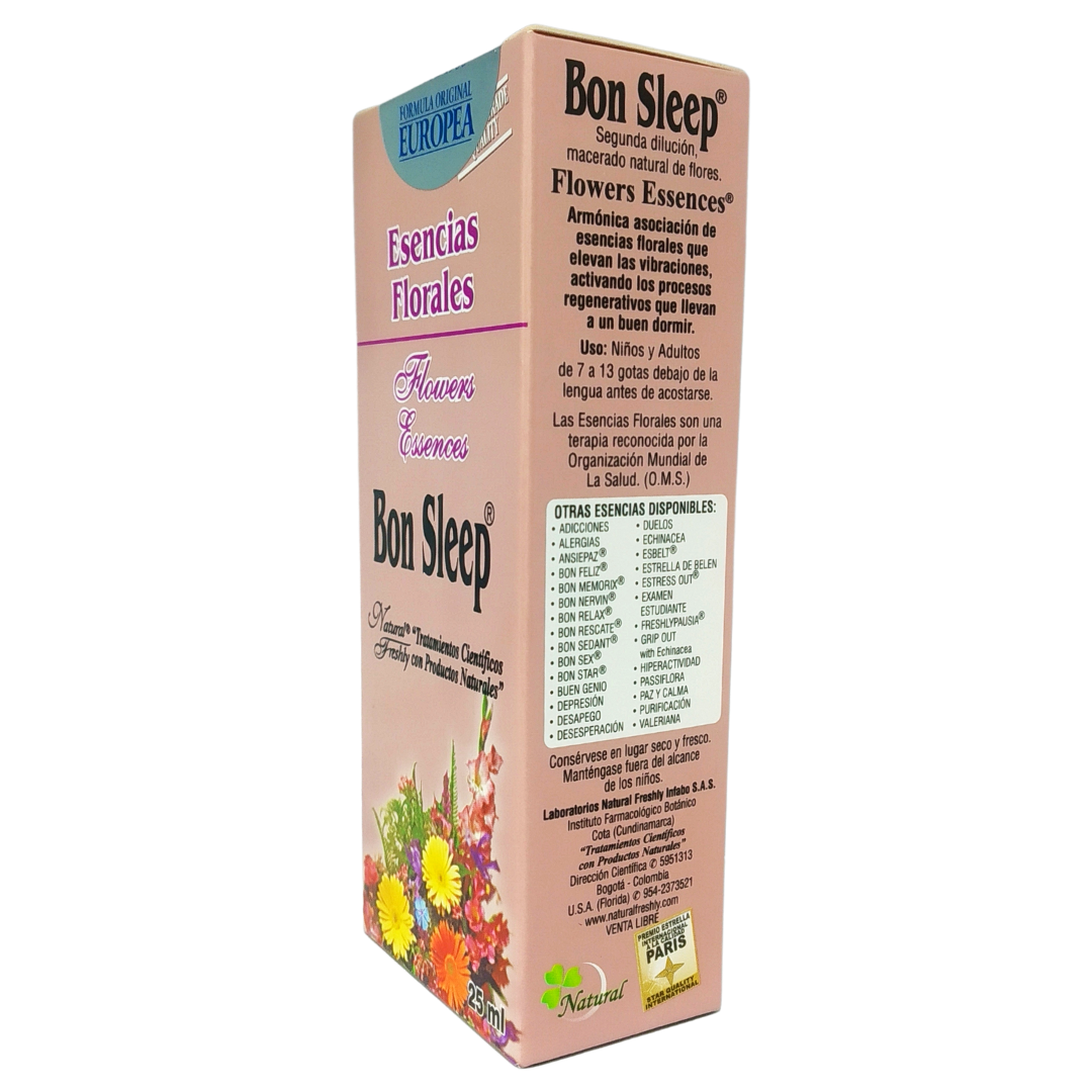 Bon Sleep - Natural Freshly - Frasco 25 ml Bon Sleep es una armónica asociación de esencias florales que eleva las vibraciones, activando los procesos regenerativos que llevan a un buen dormir. Las esencias florales son una terapia reconocida por la Organización Mundial de la Salud (O.M.S.)