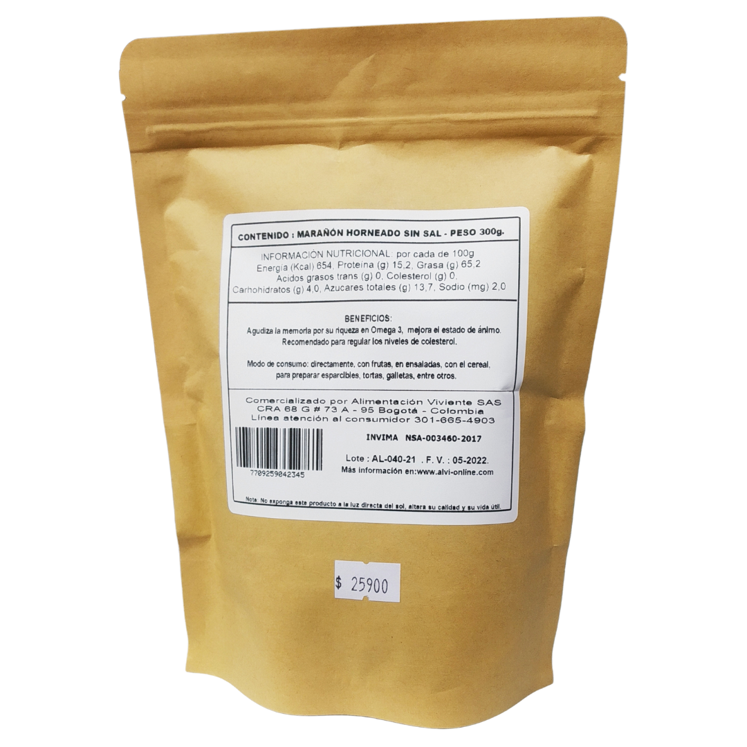 Nuez de Marañón - Alvi - Bolsa 150 / 300 gr Agudiza la memoria por su riqueza en Omega 3, mejora el estado de ánimo. Recomendado para regular los niveles de colesterol.