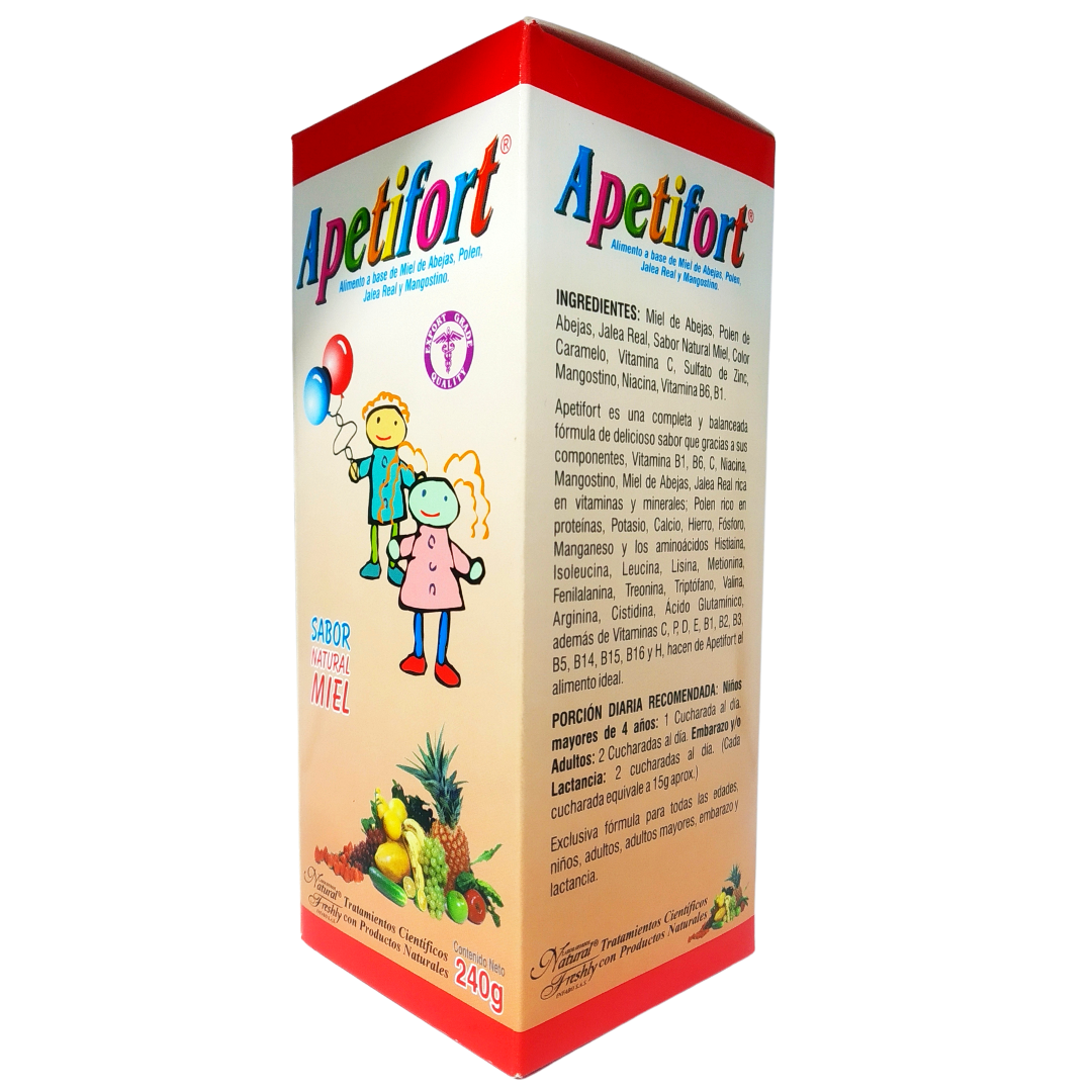 Apetifort - Natural Freshly - Frasco 240 ml Es una completa y balanceada fórmula de delicioso sabor que gracias a sus componentes, hacen de Apetifort el alimento ideal. Estimulante natural del apetito en niños y adultos y sobre todo en aquellos casos donde la pérdida del apetito esté asociada a poliparasitismo intestinal.