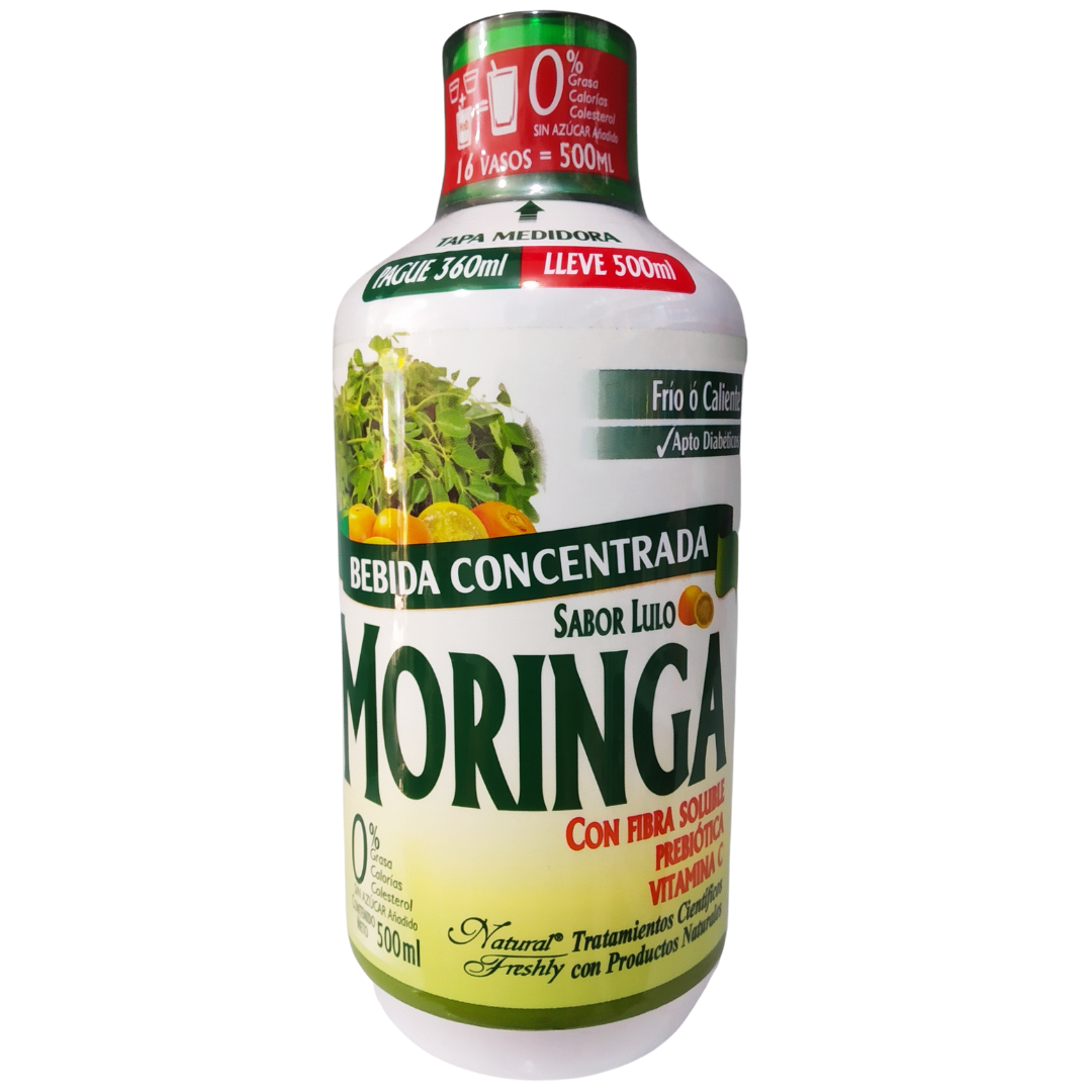 Bebida Concentrada Moringa - Natural Freshly - Botella 500 ml La moringa es una rica fuente de vitaminas, minerales y aminoácidos. Lucha contra los radicales libres. Antiinflamatorio. Protege el sistema cardiovascular. Apoya la salud del cerebro. Protege el hígado. Apta para diabéticos.