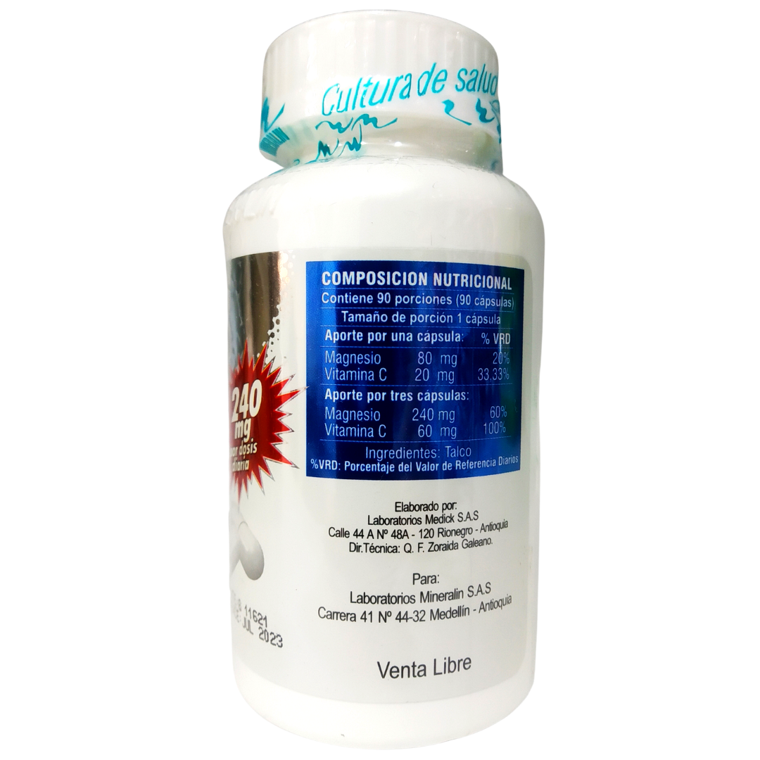 Componentes Magnesio 80 mg, Vitamina C 20 mg.
