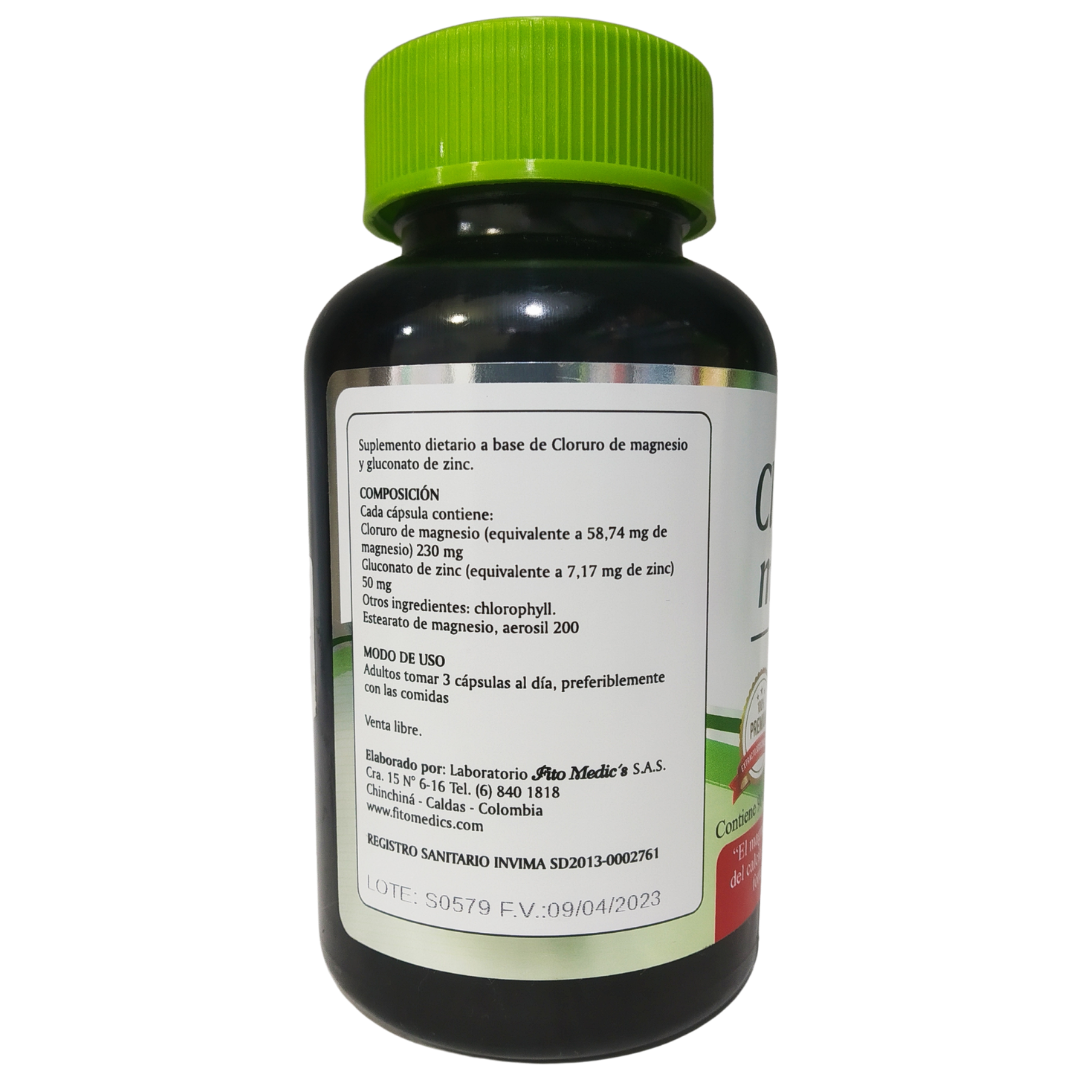 Cloruro de Magnesio - Fito Medic´s - 90 Cápsulas El Magnesio promueve la absorción y retención del calcio. Igualmente interviene en la función nerviosa y muscular.
