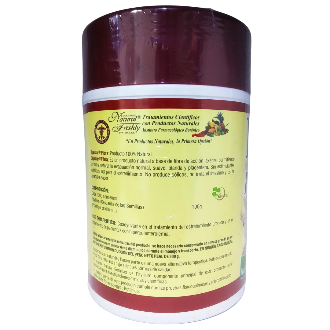 Digestar Fibra Natural Psyllium - Natural Freshly - Frasco 300 g Es un producto natural a base de fibra de acción laxante, permitiendo en forma natural la evacuación normal, suave, blanda y placentera. Sin estimulantes químicos, útil para el estreñimiento. No produce cólicos, no irrita el intestino y es de agradable sabor.