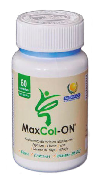 MaxCol - ON - Naturasol - Frasco x 60 / 120 Cápsulas El MaxCol - ON es una fórmula que contiene un 80% en fibra, y un 20% en plantas laxantes, siendo un excelente producto naturista para el cuidado, la limpieza y la mejoría de la digestión.