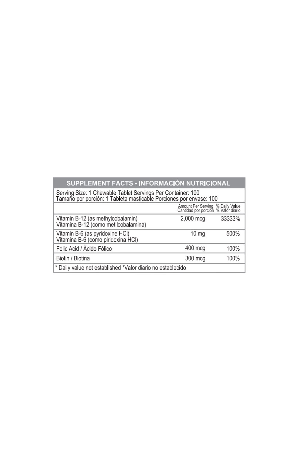 Componentes Vitamina B12 (como MetilCobalamina), Vitamina B6 (como Piridoxina HCl), Ácido Fólico, Biotina.