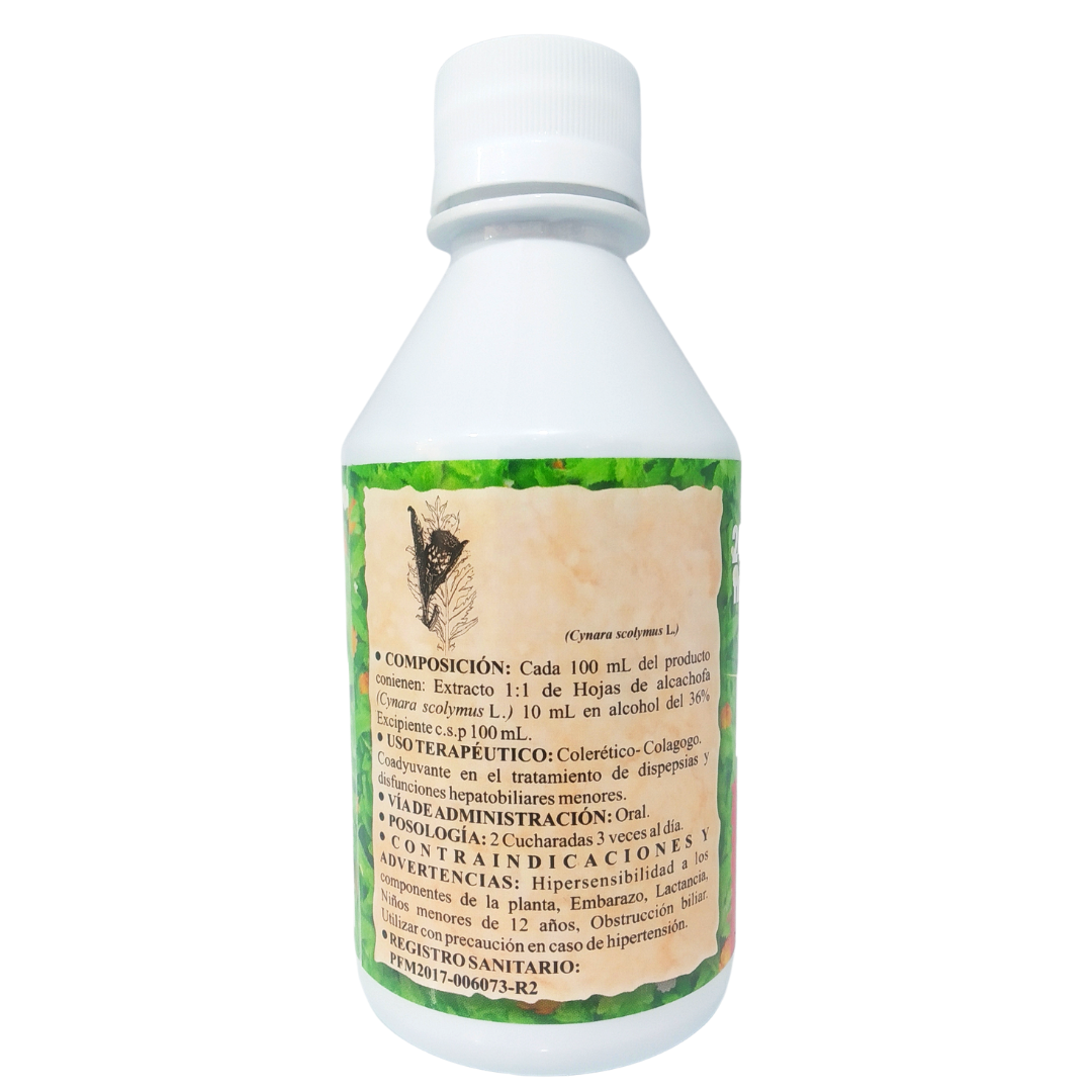 Componentes Cada 100 ml del producto contienen: Extracto 1:1 de Hojas de alcachofa 10 ml en alcohol del 36% Excipiente c.s.p 100 ml.