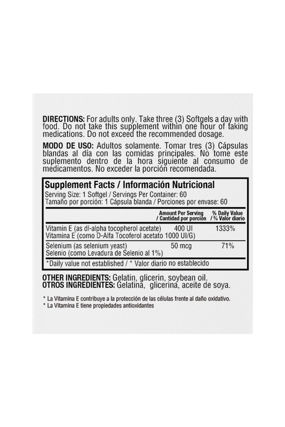 Vitamina E 400 IU Con Selenio - Healthy America - Frasco x 60 Cápsulas La vitamina E es un nutriente importante para la visión, la reproducción y la salud de la sangre, el cerebro y la piel. También tiene propiedades antioxidantes.
