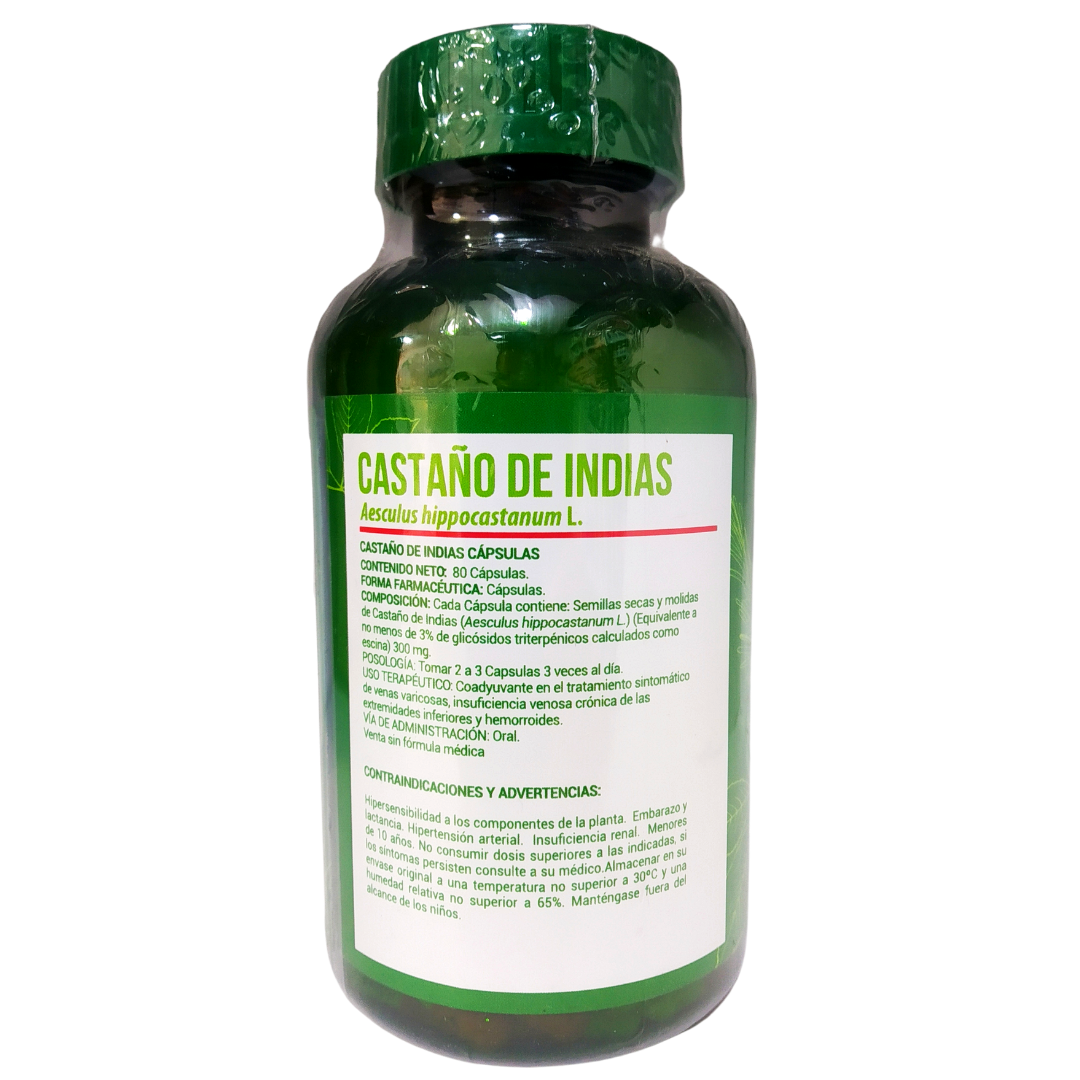 Castaño de Indias - Funat - Frasco x 80 Cápsulas El Castaño de Indias es una planta oleaginosa, es decir que puede extraerse aceite de las semillas, posee propiedades antiinflamatorias y antihemorroidales, por lo que es muy utilizada en el tratamiento de las hemorroides y de problemas en la circulación, como insuficiencia venosa y várices.